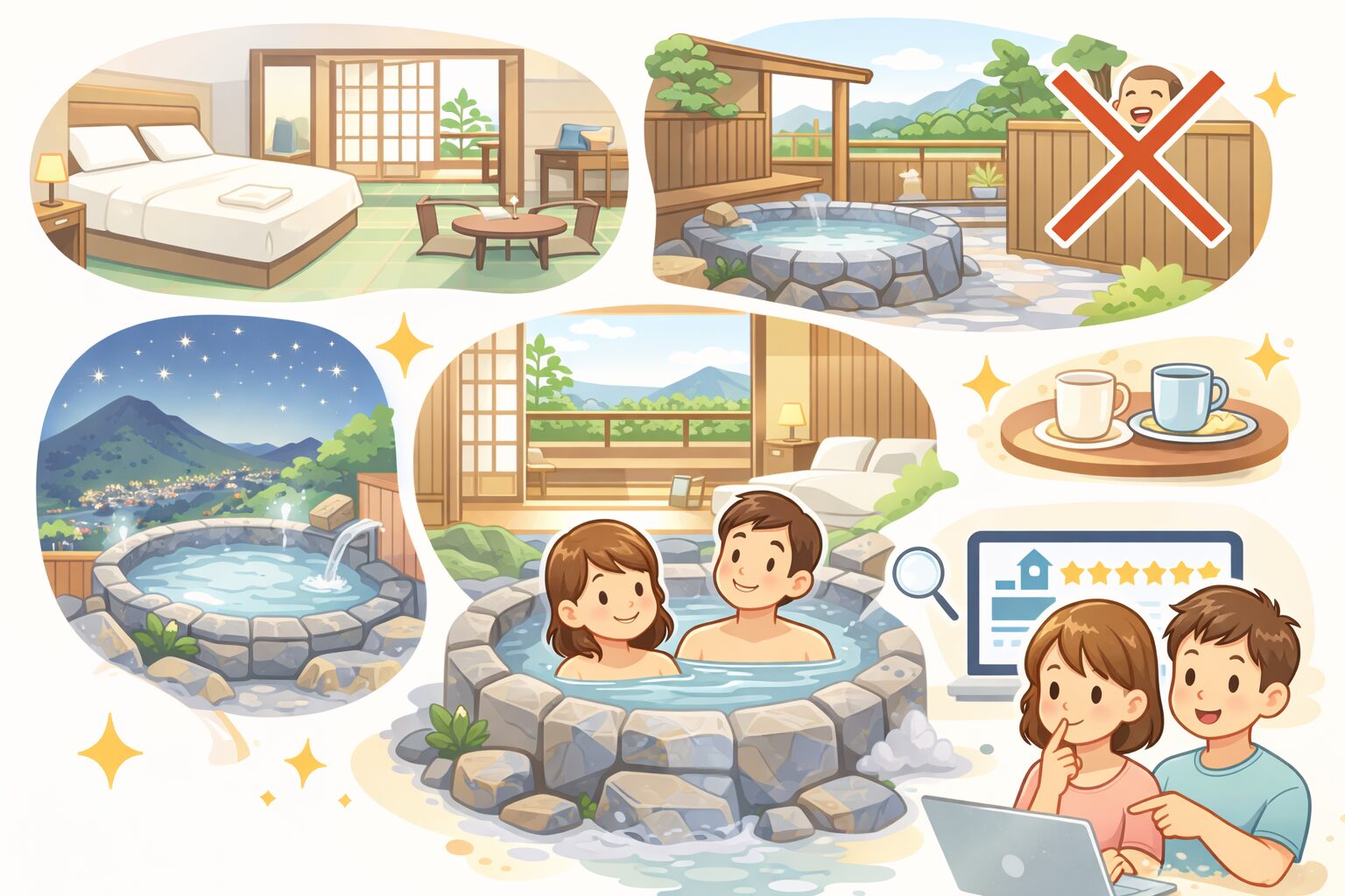 露天風呂付き客室はとても魅力的ですが、実は“宿選び全体の視点”もとても大切です。